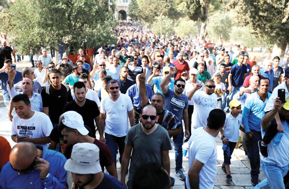 وأدى أكثر من مئة ألف مصلٍ صلاة العصر في المسجد الأقصى أمس (الخميس) بعد أن دخلوه مكبرين مهللين استجابة لدعوة المرجعيات الدينية إلى المصلين في القدس والداخل وكل من يستطيع الوصول للمسجد الأقصى، إلى الدخول لباحات المسجد مكبرين مهللين. ومن جهته، طالب خطيب المسجد الأقصى عكرمة صبري جماهير الشعب الفلسطيني «بالاستمرار بالحشد نحو المسجد الأقصى، لتحقيق المزيد من الانتصارات. وكان رئيس مجلس الأوقاف عبدالعظيم سلهب قد قال أمس: «إن تقرير اللجنة الفنية أظهر أن كل المعيقات التي وضعتها سلطات الاحتلال قد أزيلت».