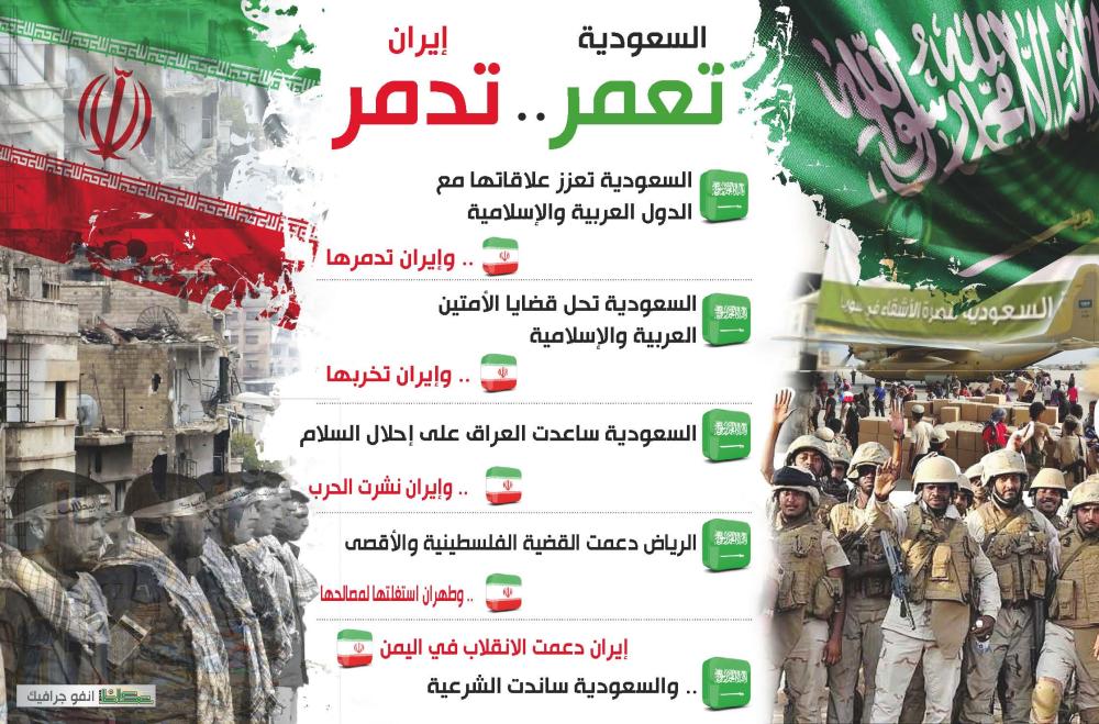 وشتان ما بين دور السعودية التي تعمر وتبني وتساعد وبين دور إيران المدمر؛ فالسعودية ساعدت العراق على إحلال السلام في بلاد الرافدين، ودعمت الحلول الشرعية للأزمة السورية، ورمت بثقلها وراء دعم الشرعية في اليمن، وفي لبنان سعت إلى دعم جهود الوحدة الوطنية.