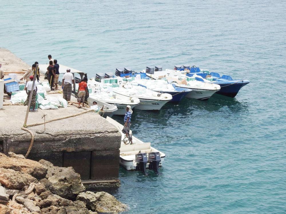 مساعدات مركز الملك سلمان لدى وصولها إلى جزيرة الفشت. (واس)