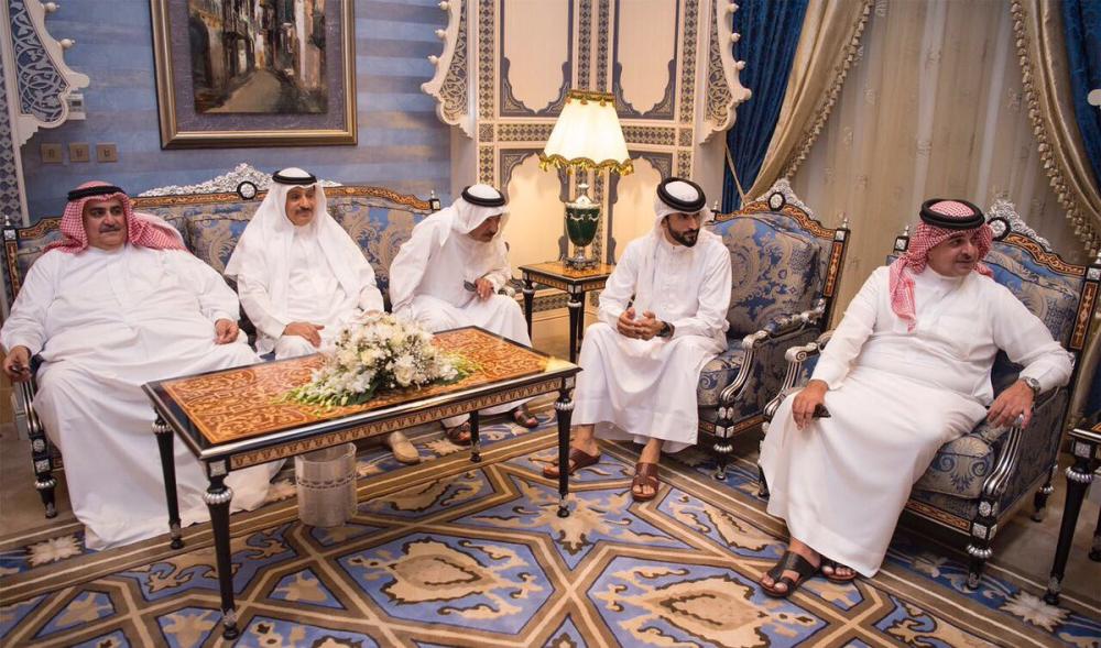 فيما حضره من الجانب البحريني الممثل الشخصي لملك البحرين الشيخ عبدالله بن حمد آل خليفة، وممثل الملك للأعمال الخيرية وشؤون الشباب الشيخ ناصر بن حمد آل خليفة، ووزير الديوان الملكي الشيخ خالد بن أحمد آل خليفة، ومرافق الملك الشيخ راشد بن عبدالله آل خليفة، ووزير الخارجية الشيخ خالد بن أحمد آل خليفة، وسفير البحرين لدى المملكة الشيخ حمود بن عبدالله آل خليفة، ورئيس جهاز الأمن الوطني الشيخ طلال بن محمد آل خليفة.