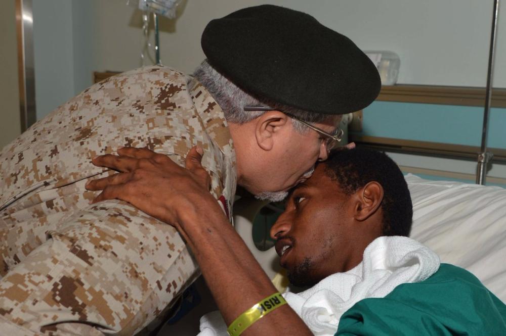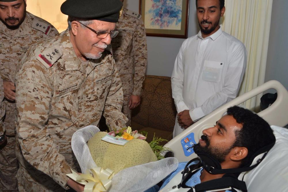 ونقل قائد قوات الدفاع الجوي للمصابين، تحيات خادم الحرمين الشريفين الملك سلمان بن عبدالعزيز، القائد الأعلى لكافة القوات العسكرية، ونائب خادم الحرمين الأمير محمد بن سلمان بن عبدالعزيز، مؤكداً لهم أن الوطن يفخر ويعتز بتضحيات وشجاعة جنودنا البواسل، كما هنأهم على انتصاراتهم المتتالية في الحفاظ على حدود وتراب هذا الوطن.