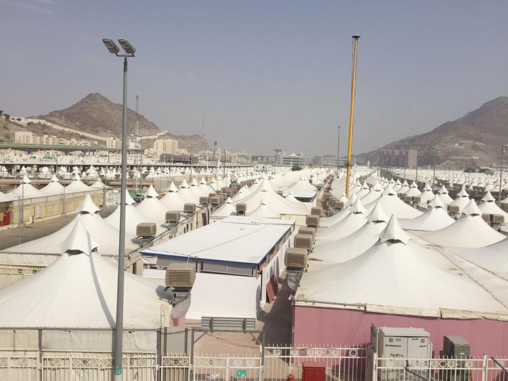 ورصدت «عكاظ» خلال جولة ميدانية صباح أمس (الجمعة) اكتمال الاستعدادات في المخيم الذي يستوعب أكثر من 2400، واكتمال فرشها والبنية التحتية المتمثلة في التمديدات الكهربائية ودورات المياه والصرف الصحي والمياه وشبكة الإطفاء والإنذار المبكر عن الحرائق وتجهيز المطبخ الرئيسي وتوفير ثلاجات حفظ الأطعمة وثلاجات مياه الشرب والمكيفات المركزية.