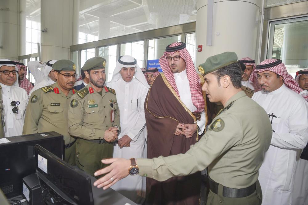 واستهل الجولة بزيارة لمطار الأمير محمد بن عبدالعزيز الدولي، إذ اطلع على إجراءات استقبال جوازات المنطقة للحجاج وكيفية إنهاء إجراءاتهم من قدومهم حتى مغادرتهم المطار، وزار مكاتب الخدمة الميدانية التابعة للمؤسسة الأهلية للأدلاء مطلعاً على آلية سير العمل داخل المكاتب، إذ دشن سيارة إرشاد التائهين. كما قام بجولة تفقدية لمقر لجنة الحج، اطلع خلالها على خدمات مكتب المتابعة والتنسيق، إضافة إلى مؤشرات الأداء ومجمل الإحصاءات والخدمات المقدمة لضيوف الرحمن زوار المسجد النبوي، واستمع إلى شرح مفصل عن دور الفرق الميدانية المعنية بمتابعة حركة الحجاج في المنطقة المركزية بالمدينة المنورة التي ترصد على مدار الساعة جميع الملاحظات المرتبطة بأعمال الحج في المنطقة. وشاهد الآلية الإلكترونية لرصد الملاحظات من خلال التطبيقات الإلكترونية عبر الأجهزة اللوحية للفرق الميدانية، التي تتضمن كاميرات التصوير لرصد المخالفات وتوثيقها إلكترونيا والتواصل مع الجهات المعنية لتلافي الملاحظات وفق المحددات والمعايير الزمنية، بالتنسيق مع ضباط الاتصال بالجهات المرتبطة بأعمال موسم ما بعد الحج في المنطقة. إثر ذلك زار مركز استقبال وتفويج حجاج الجو والبر بطريق الهجرة، إذ تجول داخل المحطة وتفقد وحدة العناية بالحجاج والمعتمرين، مطمئناً على سير العمل وراحة حجاج بيت الله الحرام زوار المدينة المنورة.