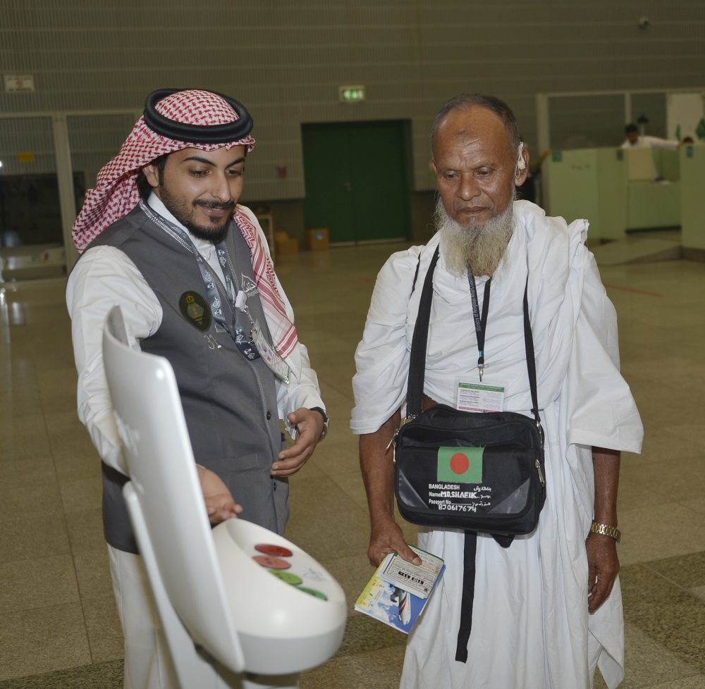 وأكد المشرف العام على أعمال الحج بمجمع صالات الحج الدكتور طارق الجويهر، أن الحالة الصحية للحجاج مستقرة ولم تظهر أي حالات موبوءة. ورصدت «عكاظ» خلال جولتها التي نفذتها أمس، بتسيهلات من مدير العلاقات العامة بمطار الملك عبدالعزيز الدولي تركي الديب والزميل سعد القحطاني، حركة دائبة للشباب السعودي وهم يحرصون على خدمة ضيوف الرحمن ومساعدة كبار السن بنقلهم عبر المقاعد المتحركة، وإرشادهم إلى الحافلات.
