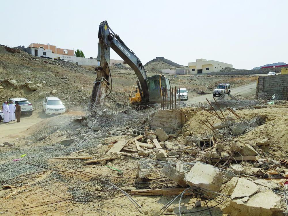 آليات البلدية تزيل تعديات أم الجود أمس (الأربعاء).