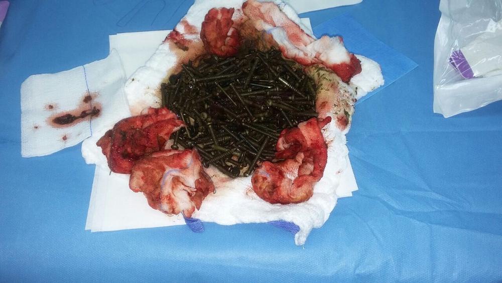 كمية من المسامير انتشلت من معدة مريض.