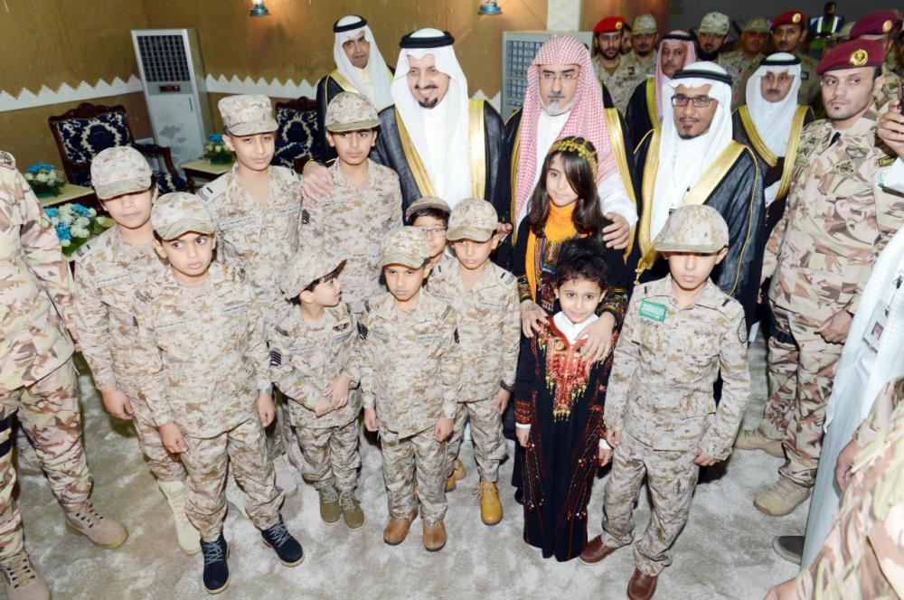 الأمير فيصل بن خالد مع أبناء الخريجين. (عكاظ)