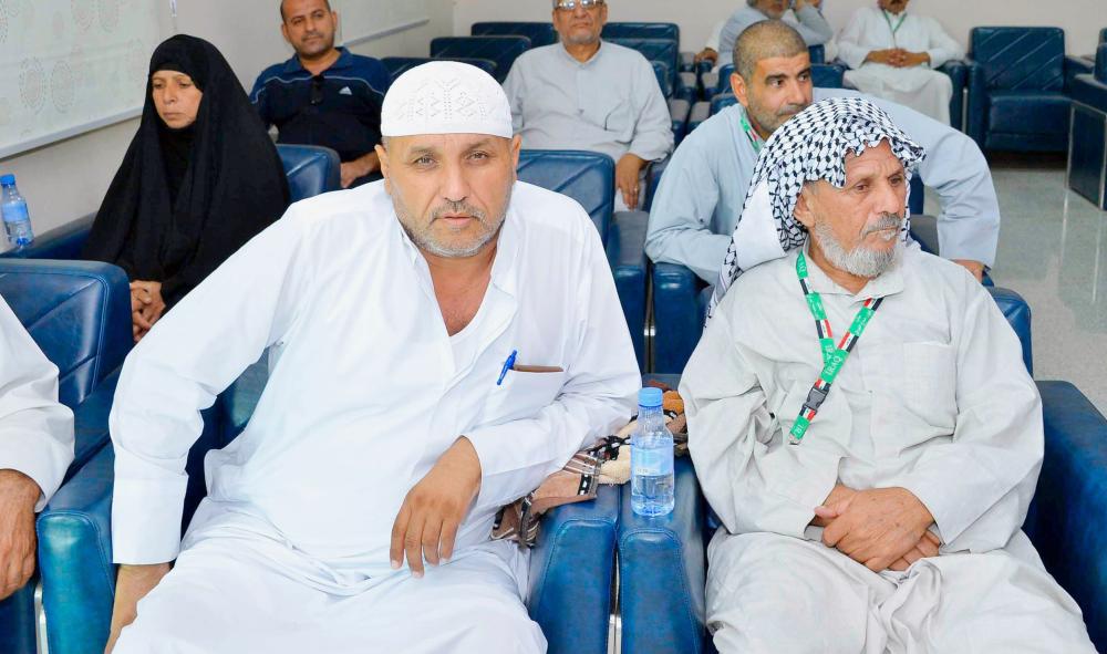 حجاج عراقيين لدى وصولهم عرعر أمس. (عكاظ)
