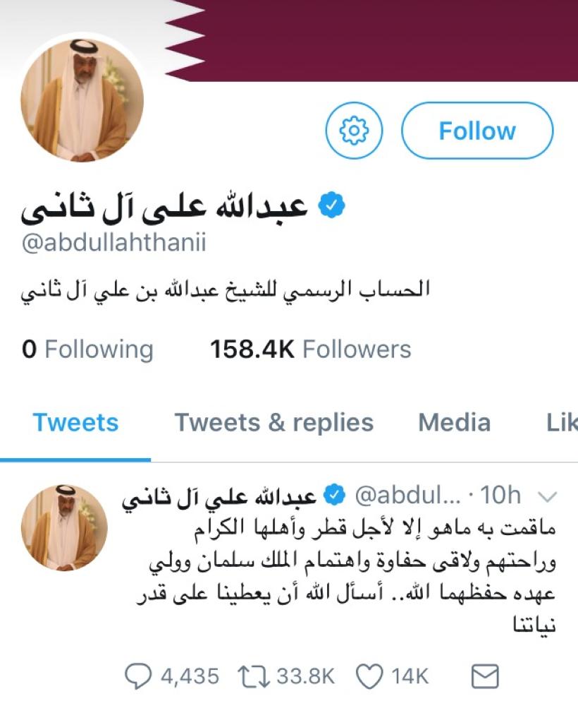 حساب آل ثاني على تويتر .. عشرات الآلاف من المتابعين خلال ساعات