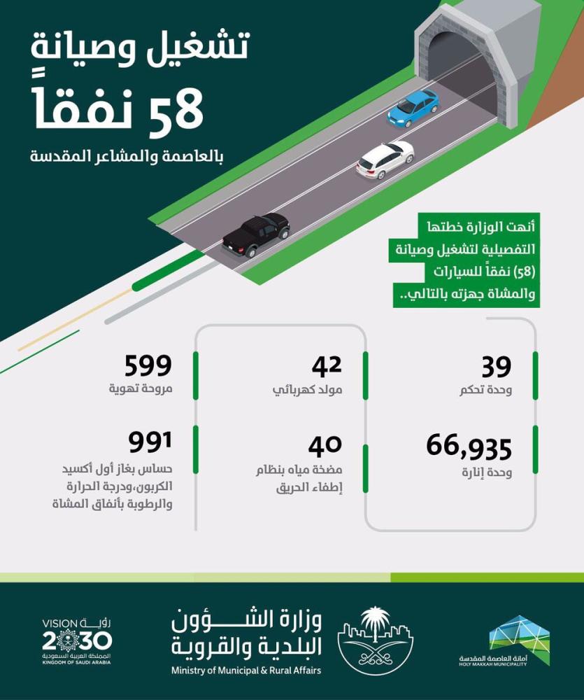 «البلدية»: تشغيل وصيانة 58 نفقاً بالمشاعر المقدسة
