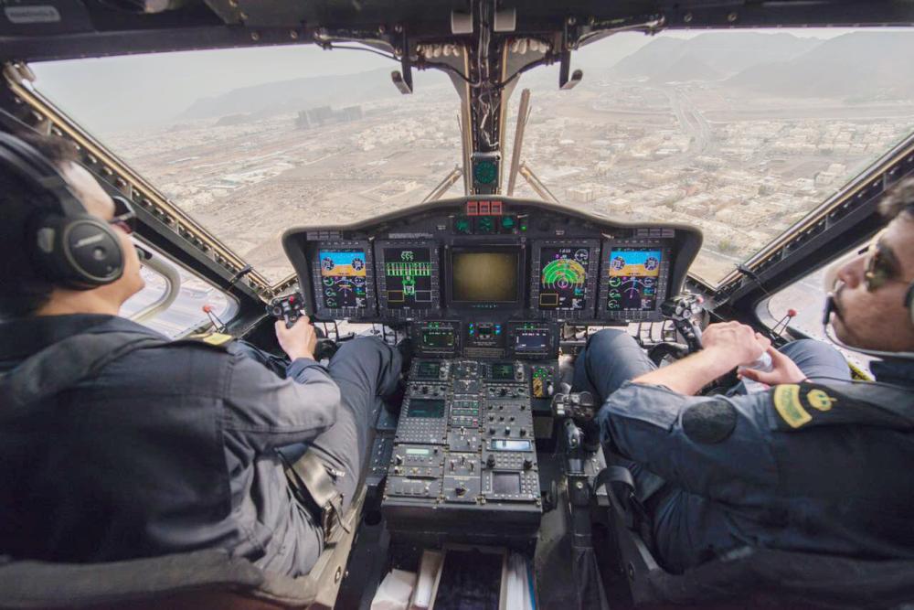 وأوضح أن الطائرات (16 طائرة «S92» و«S70I») متعددة المهمات مزودة بأنظمة الرؤية الليلية، والكاميرات الحرارية، وتقنيات الاتصال الحديثة، والتجهيزات الطبية والإسعافية، علاوة على الأطقم والكوادر ذات التأهيل والتدريب العالي، والتي اكتسبت خبرات متراكمة من مواسم سابقة تمكنها من رصد الظواهر الأمنية والمرورية من الجو، وإرسال التقارير الفورية للجهات المعنية.