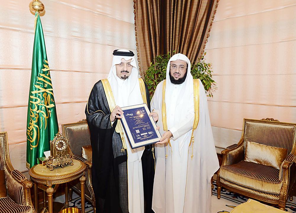 أمير عسير خلال استلام شهادة الإيزو. (عكاظ)