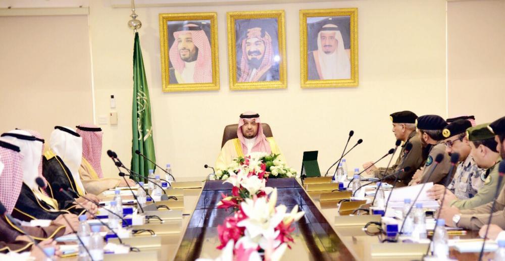 أمير الشمالية مترئسا الاجتماع الخاص لبحث نتائج استقبال مدينة الحجاج بمنفذ جديدة عرعر. (عكاظ)