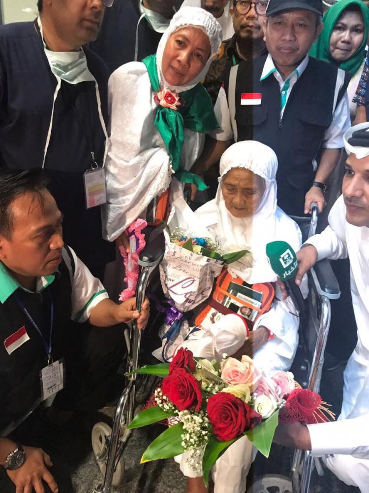 احتفت بعثة الحج الإندونيسية بوصول الحاجة الإندونيسية ماريا محمد، التي تبلغ من العمر 104 أعوام إلى جدة قادمة من مطار لومبوك الدولي.