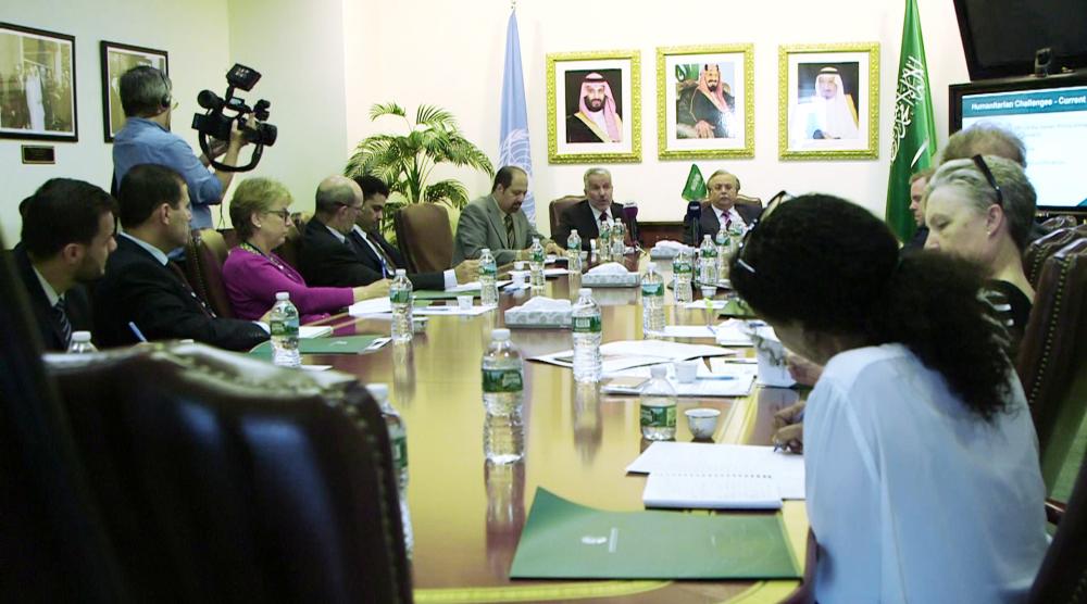 د.الربيعة ملتقيا كبار المسؤولين في منظمات الإغاثة الإنسانية التابعة للأمم المتحدة والأخرى الدولية العاملة في اليمن أمس بنيويورك.