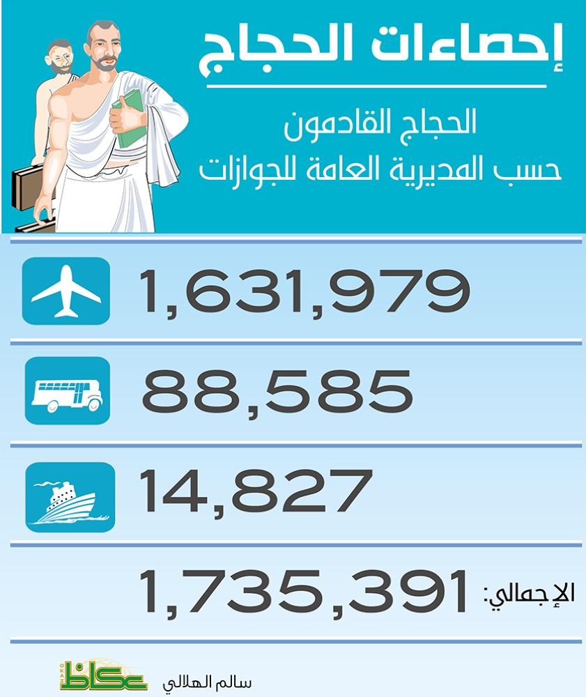ولفت إلى أن عدد تصاريح الحج الصادرة للمواطنين 123415 تصريحاً و109 آلاف للمقيمين.