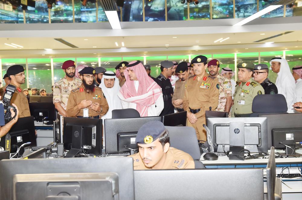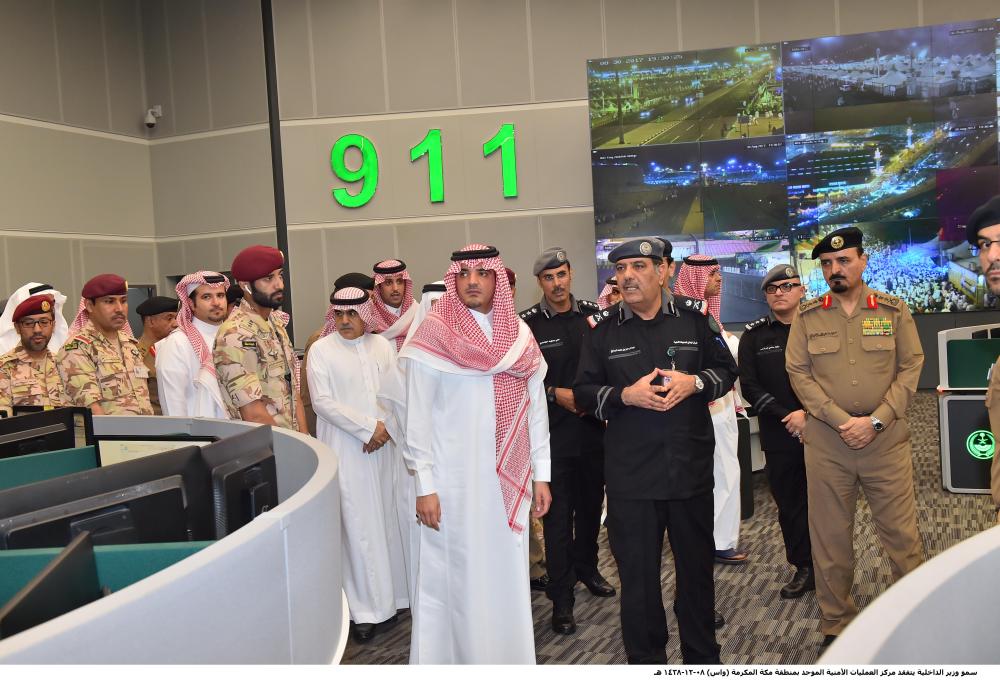 تفقد وزير الداخلية رئيس لجنة الحج العليا الأمير عبدالعزيز بن سعود بن نايف، مساء أمس (الأربعاء)، مركز العمليات الأمنية الموحد بمنطقة مكة المكرمة، واطمأن على سير العمل بالمركز واستعدادات الجهات الأمنية التي باشرت إدارة مهماتها من المركز لخدمة حجاج بيت الله الحرام في موسم حج هذا العام 1438هـ.