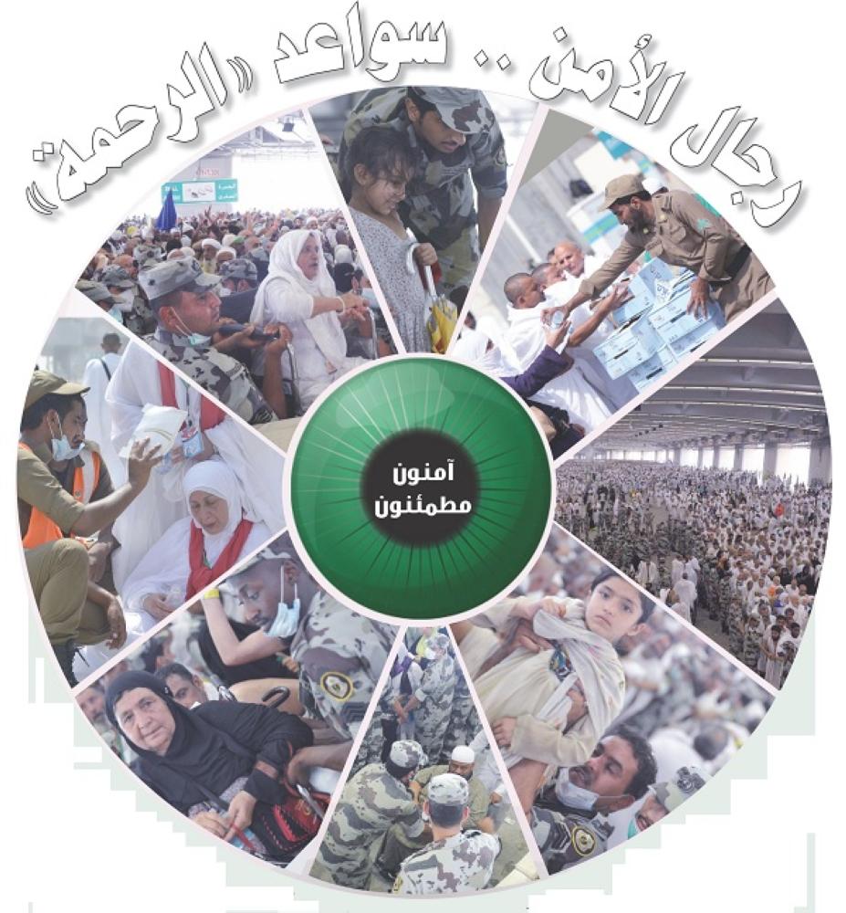 ضابط إيقاع الحج هم رجال الأمن، فبجهودهم رسمت لوحة إنسانية يتغنى بها السعوديون أمام العالم بأسره، فلم يكتفوا بحفظ أمن المشاعر وأمان الحجيج، بل سارعوا لحمايتهم حتى من ألسنة لهيب الشمس الحارقة، محولين أجواء المشاعر الحارقة إلى مكائن عمل إنساني وروحاني لا تتوقف، منشئين غيمة سعادة محسوسة تهطل فرحاً على أفئدة قاصدي البيت العتيق.