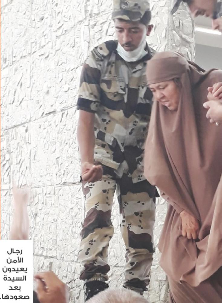 وشاهد رجال الأمن الحاجة تحاول الوقوف بالقرب من الشاخص لرميه من الأعلى، لكنها لم تتمكن من الرمي بالطريقة التي تتمناها لكبر سنها، فطلبت من رجال الأمن رفعها أعلى السور حتى تستطيع أن ترمي بالطريقة التي تمنتها، وهي أقرب ما تكون من الشاخص، فلبى رجال الأمن المنتشرون حول الجمرة طلبها، إذ رفعها ثلاثة رجال أمن بمعاونة ابنها، وبعد الرمي أنزلوها من أعلى السور، فيما تلقاها ولدها على ظهره، لتختتم هذا المشهد بالدعاء لرجال الأمن وقيادة المملكة التي تبذل جهدا كبيرا لتقديم أفضل الخدمات بأعلى مستويات الراحة واليسر، كما شكرت رجال الأمن ممن ساعدوها لتحقيق أمنيتها، ما ترك انطباعا ممتازا لدى الحاجة عن جهود رجال الأمن الذين لا يألون جهدا في تقديم العودة والمساعدة حسب التوجيهات العليا برعاية الحجيج كافة والاهتمام بهم، والعمل على راحتهم في كل مكان وزمان.