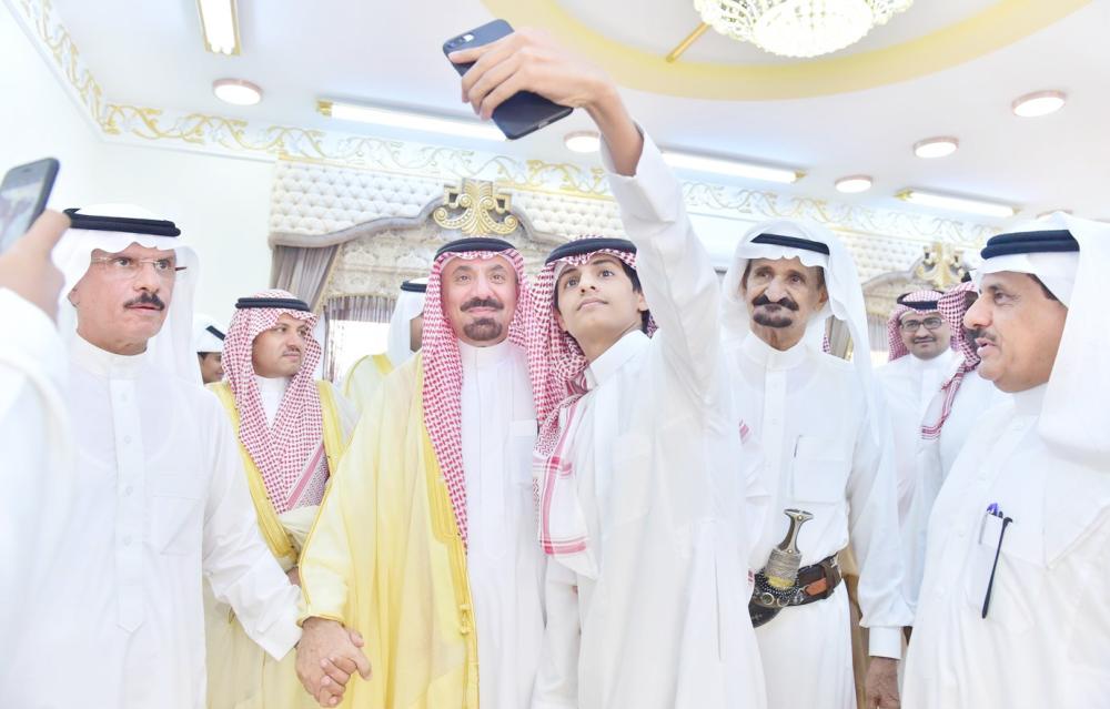صورة سيلفي جمعت أمير نجران بمواطنين بعد زيارته للشيخ أبو ساق والشيخ ابن منيف أمس (الأحد).
