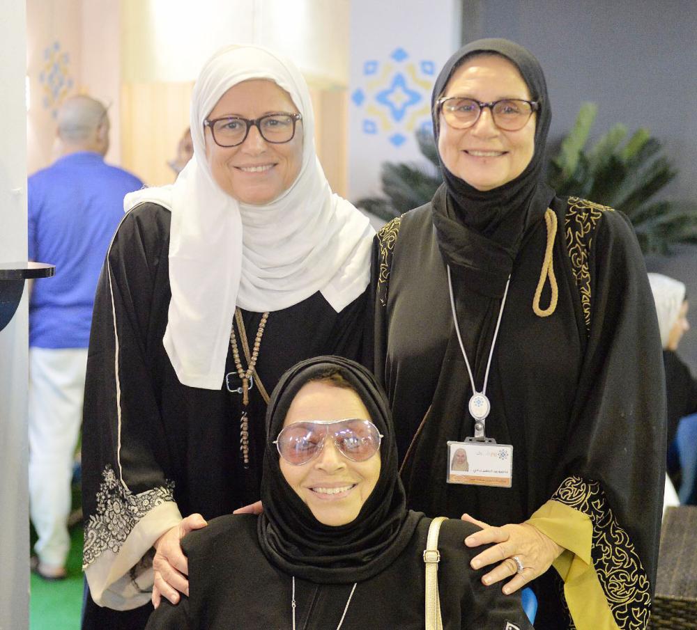 المطوفة روح وابنتاها فاطمة وإيمان. (تصوير: عاطف هوساوي)