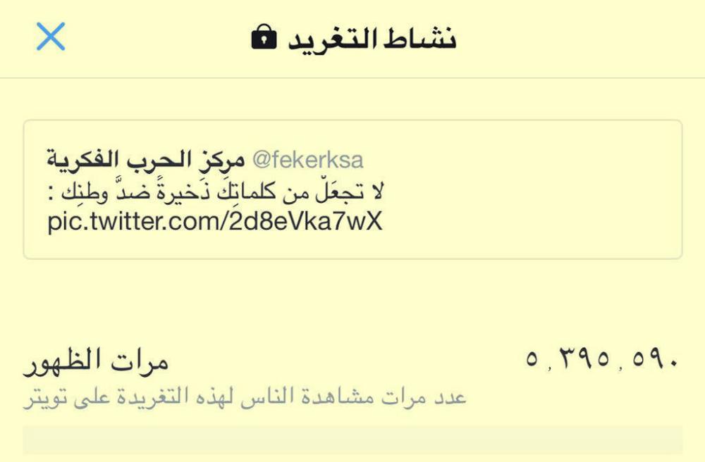 ضوئية لتغريدة مركز الحرب الفكرية.