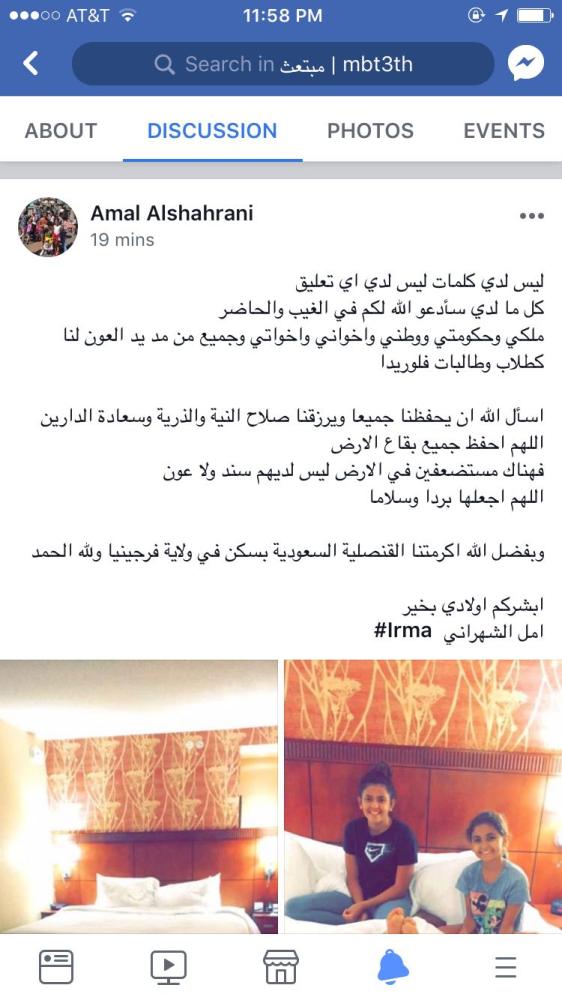 وأكد مبتعثون سعوديون تم إجلاؤهم من ولاية فلوريدا، أن القنصلية السعودية بهيوستن تواصلت مع عدد من المبتعثين الذين خرجوا من الولاية، ووفرت لهم فنادق على نفقتها في ولايات أكثر أمناً وبعيدة عن الإعصار.