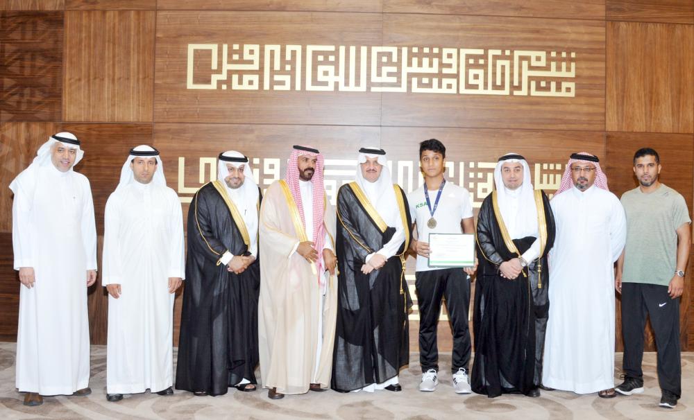 ثم كرم الأمير سعود بن نايف، البطل محمد بن مصطفى السويق لاعب المنتخب الوطني للتايكوندو ونادي السلام بمحافظة القطيف؛ لتحقيقه الميدالية الذهبية في بطولة التايكوندو للناشئين التي أقيمت في مصر أخيراً.