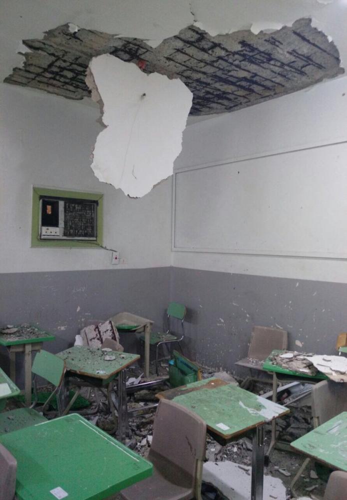 يذكر أن مواقع التواصل الاجتماعي تداولت صورا لأحد فصول المدرسة تظهر مدى التضرر الذي لحق بجدرانه واسقف الفصل.