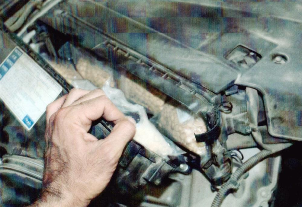 حبوب الكبتاغون المخبأة داخل المركبة. (عكاظ)