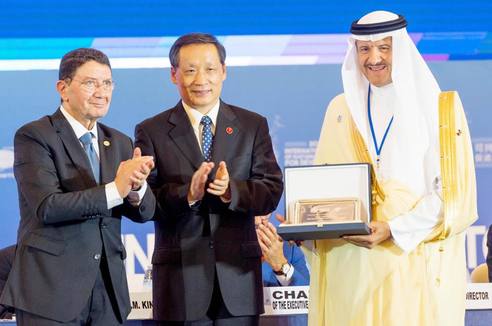 وسلم نائب رئيس الوزراء الصيني الأمين العام لمنظمة السياحة العالمية الدكتور طالب الرفاعي، الدرع التكريمية للأمير سلطان بن سلمان بحضور أكثر من 1100 مسؤول و75 وزيرا يمثلون 132 بلدا حول العالم، ضمن أعمال الدورة 22 للجمعية العمومية لمنظمة السياحة العالمية التي انعقدت في مدينة شنغدو بجمهورية الصين الشعبية.