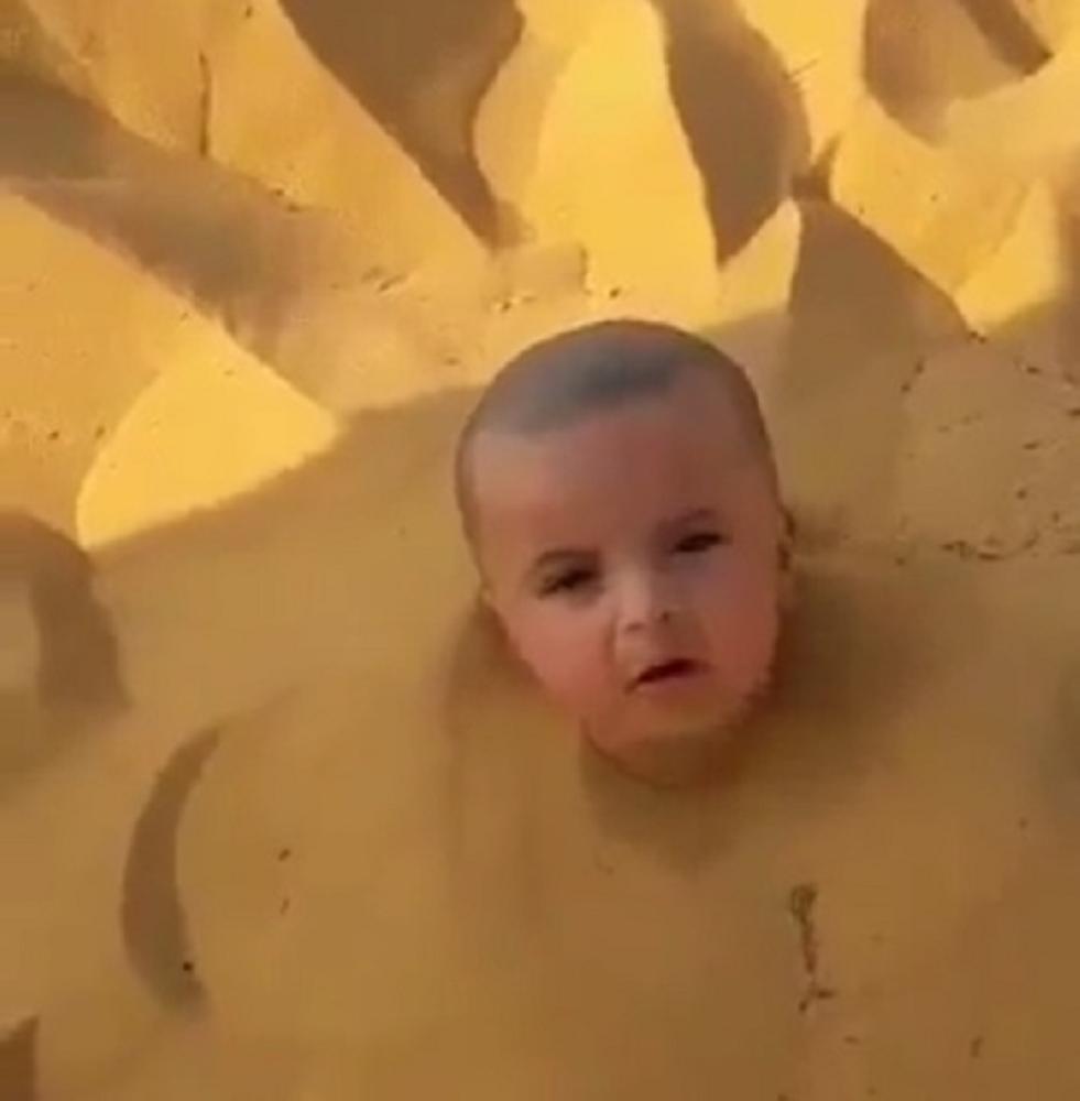 صورة من مقطع الفيديو تظهر الطفل مدفونا في الرمال