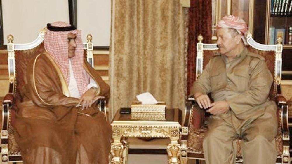 السبهان أثناء لقائه رئيس إقليم كردستان العراق مسعود بارزاني.