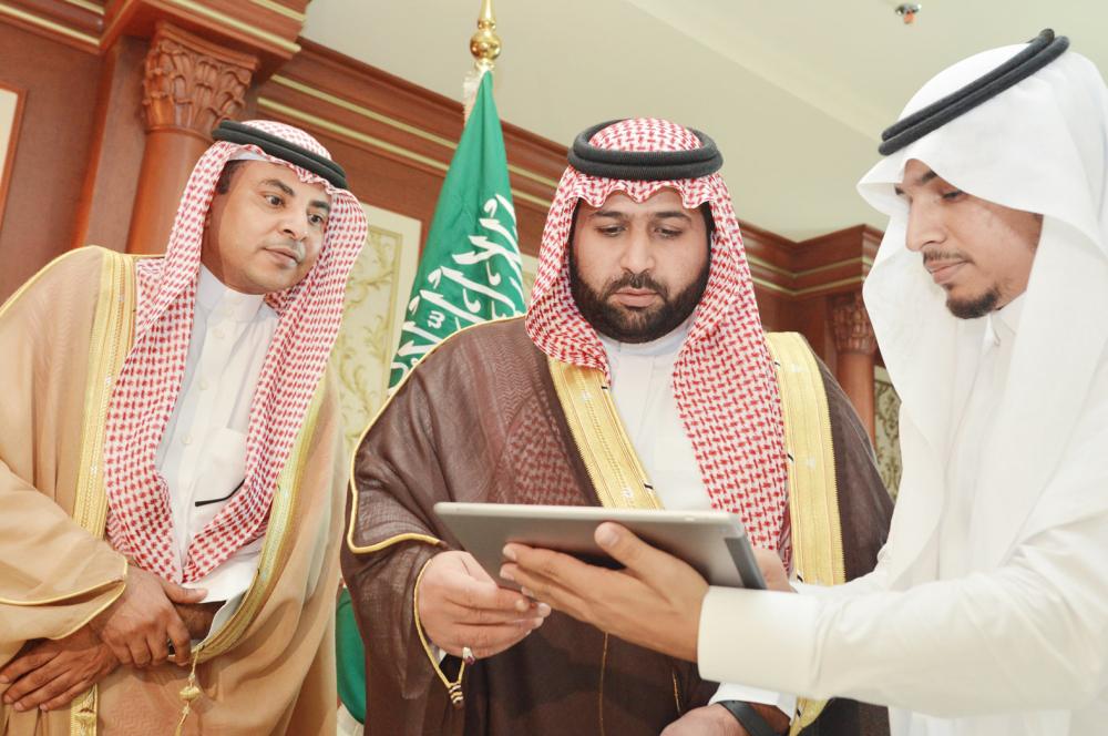 نائب أمير منطقة جازان مدشناً الموقع الإلكتروني لجمعية تنمية الشباب. (عكاظ)