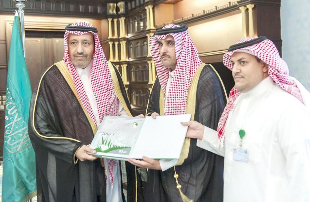 أمير الباحة متسلماً نسخة من التقرير السنوي لصندوق التنمية الزراعية.