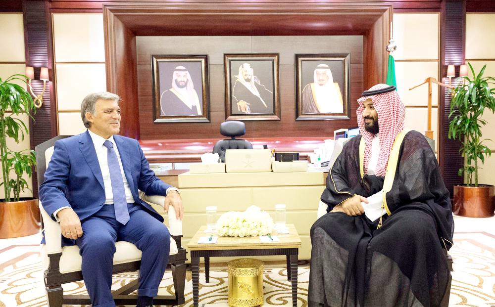 التقى ولي العهد نائب رئيس مجلس الوزراء وزير الدفاع الأمير محمد بن سلمان بن عبدالعزيز في مكتبه بجدة مساء أمس (الثلاثاء)، رئيس الجمهورية التركية السابق عبدالله غول. وجرى خلال اللقاء استعراض عدد من المسائل ذات الاهتمام المشترك. حضر اللقاء المستشار في الديوان الملكي المشرف العام على مكتب وزير الدفاع فهد العيسى، وعدد من المسؤولين.