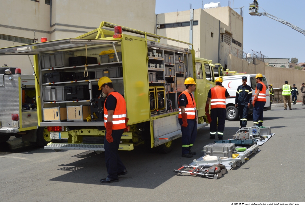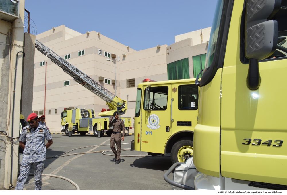 نفذت الإدارة العامة للدفاع المدني بمحافظة الطائف، أمس (الثلاثاء)، تجربة فرضية لاندلاع حريق في أحد عنابر السجن العام بالمحافظة.