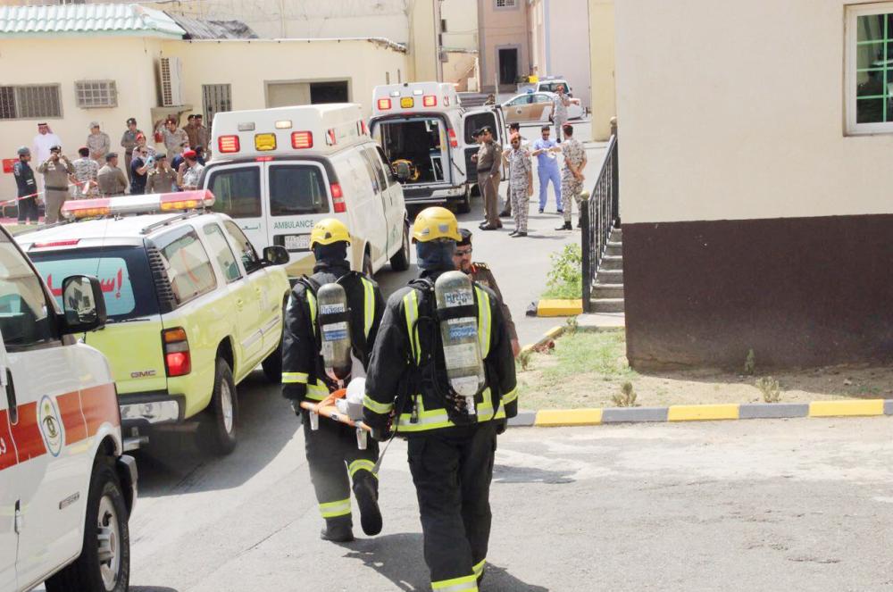 وأشار إلى أنه عند وصول فرق الدفاع المدني، تم التدخل وإخماد الحريق، وإخلاء الموقع بالكامل، وجرى إخلاء 114 شخصا من السجناء ومنسوبي السجن لمنطقة التجمع والفرز، ونتج عن الحالة عدد من الإصابات، منها حالتان من الدرجة الأولى (إصابات اللون الأحمر) تم نقلهما مباشرة إلى مستشفى الملك عبدالعزيز التخصصي عن طريق إسعافات الهلال الأحمر والشؤون الصحية، وثلاث إصابات من الدرجة الثانية (اللون الأصفر) وتم نقلها إلى مستشفى الملك عبدالعزيز التخصصي، ومجمع الملك فيصل الطبي، عن طريق الإسعافات، وأربع إصابات من الدرجة الثالثة (اللون الأخضر) وتم تقديم الرعاية الصحية لها في الموقع من قبل الفريق الطبي، إضافة إلى مصرع شخصين.