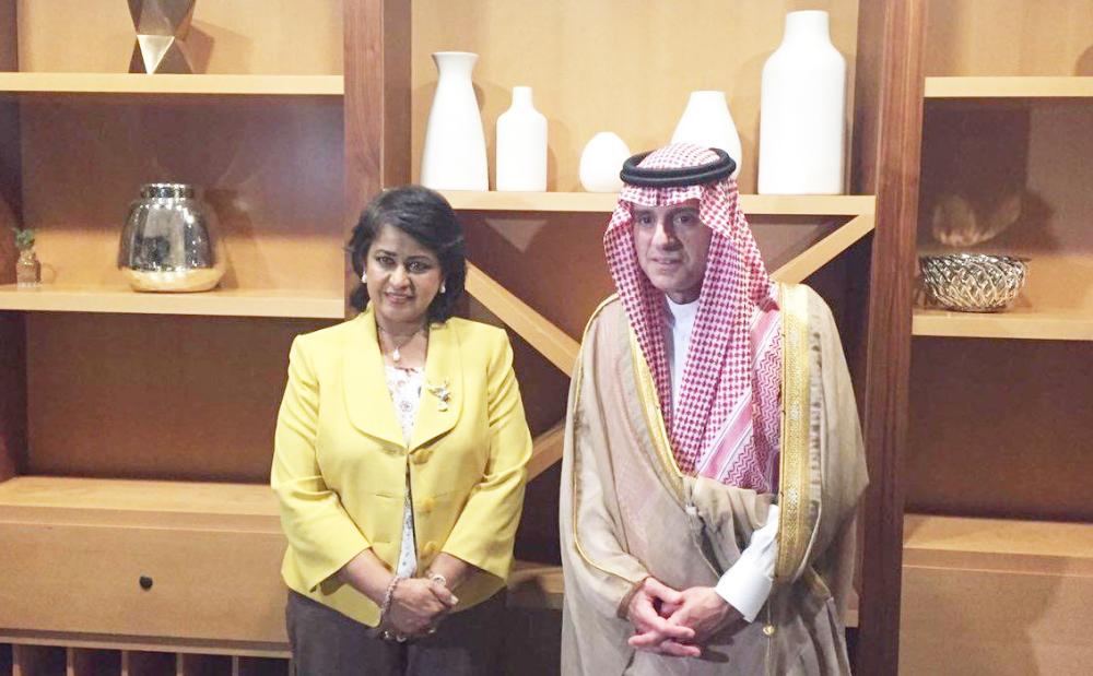 الجبير ملتقياً رئيسة موريشيوس أمس الأول. (واس)