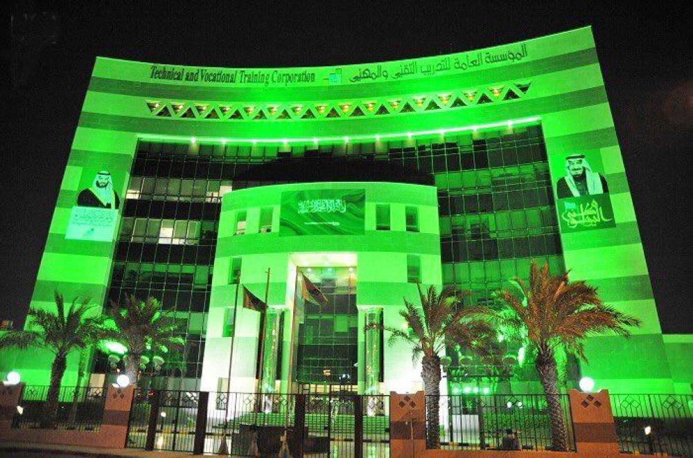 مبنى «التدريب التقني» يرتدي الوشاح الأخضر في يوم الوطن