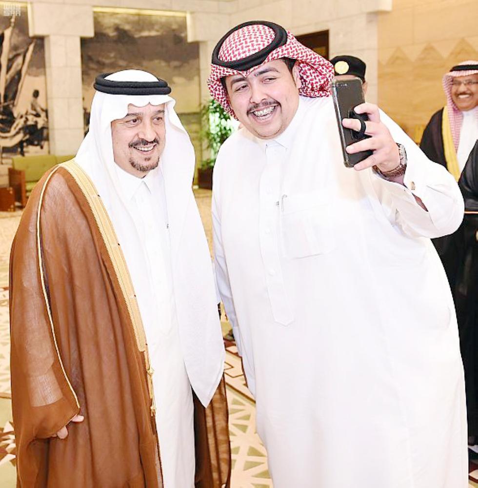 الأمير فيصل بن بندر يلتقط سيلفي مع أحد الحاضرين في اللقاء. (واس)