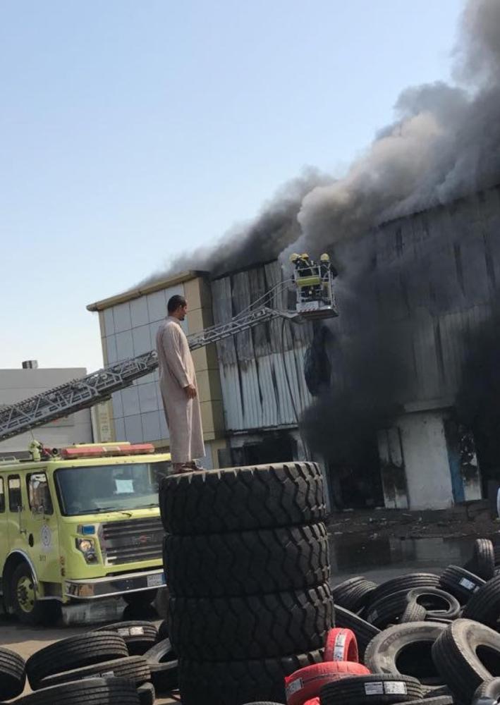 «مدني جدة» يخمد حريق مستودع إطارات.. والأسباب مجهولة