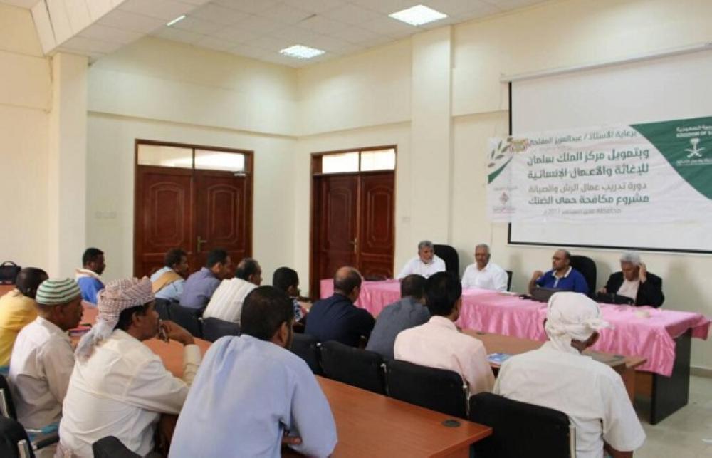 نفذ مركز الملك سلمان للإغاثة والأعمال الإنسانية أمس (الإثنين) الدورة التدريبية لعمال الرش والصيانة في مديرية خور مكسر، في إطار مشروع مكافحة حمى الضنك الذي يموله المركز من خلال أحد الشركاء المحليين وبالتنسيق مع مكتب الصحة في محافظة عدن.