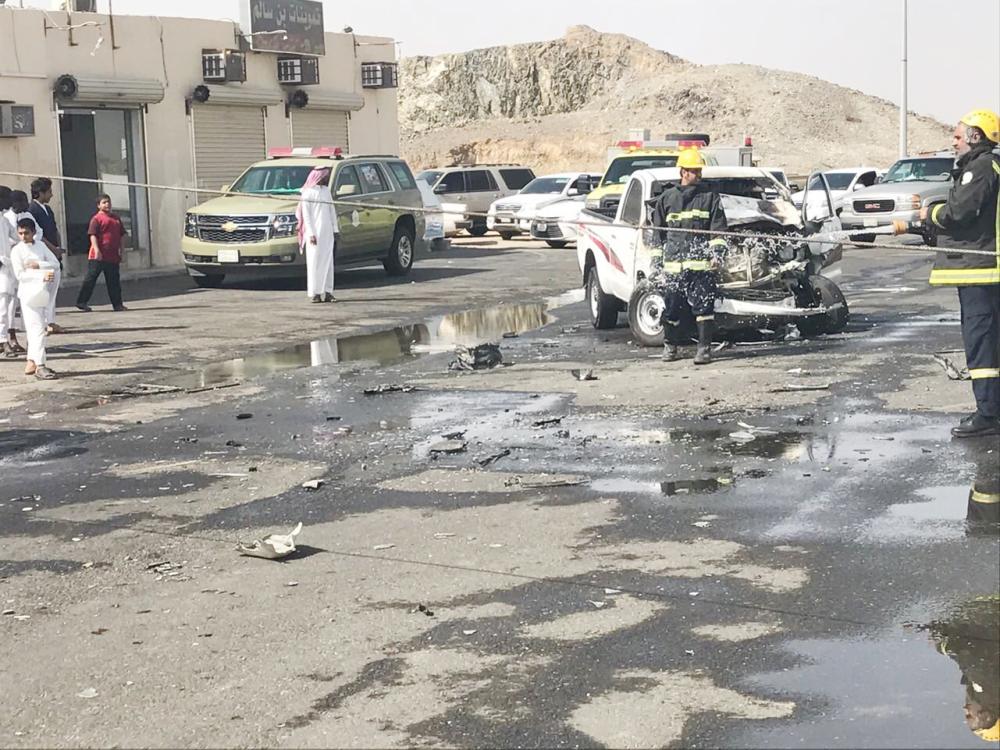 مسرح الحادثة التي اصيبت فيها طالبات بيشة