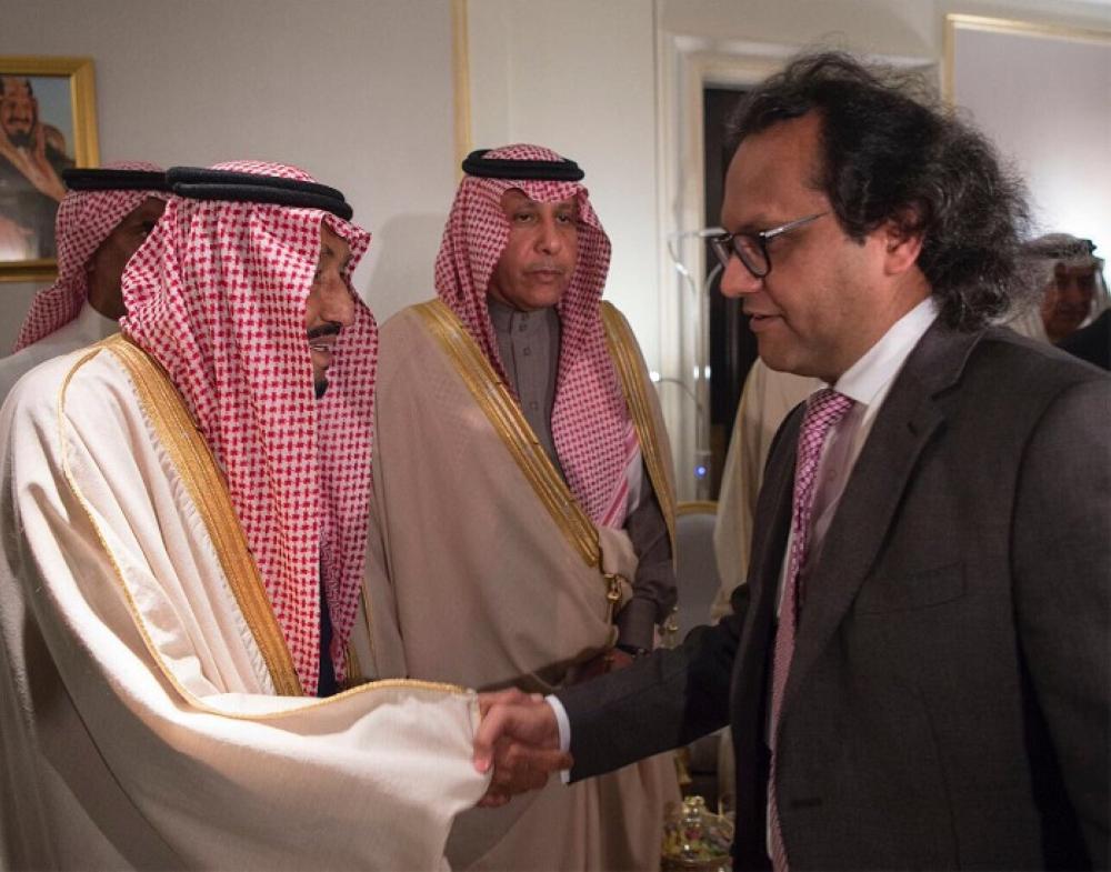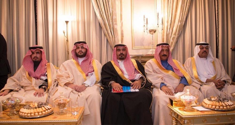 حضر الاستقبال، الأمير خالد بن فهد بن خالد، والأمير منصور بن سعود بن عبدالعزيز، والأمير محمد بن فهد بن عبدالعزيز، والأمير سعود بن فهد بن عبدالعزيز، والأمير طلال بن سعود بن عبدالعزيز، والأمير خالد بن سعد بن فهد، ومستشار خادم الحرمين الشريفين الأمير خالد بن بندر بن عبدالعزيز، ووزير الدولة عضو مجلس الوزراء مستشار خادم الحرمين الشريفين الأمير الدكتور منصور بن متعب بن عبدالعزيز، والأمير فهد بن عبدالله بن عبدالعزيز بن مساعد، ومستشار خادم الحرمين الشريفين الأمير تركي بن عبدالله بن محمد، والأمير سطام بن سعود بن عبدالعزيز، والأمير خالد بن تركي بن عبدالعزيز، والأمير عبدالله بن فهد بن جلوي، والمستشار في الديوان الملكي الأمير تركي بن محمد بن فهد بن عبدالعزيز، والأمير سعود بن سلمان بن عبدالعزيز، والأمير تركي بن سلمان بن عبدالعزيز، والمستشار في الديوان الملكي الأمير عبدالله بن خالد بن سلطان بن عبدالعزيز، والأمير سلمان بن سلطان بن سلمان بن عبدالعزيز، والأمير نايف بن سلمان بن عبدالعزيز، والأمير عبدالمجيد بن عبدالإله بن عبدالعزيز، والأمير راكان بن سلمان بن عبدالعزيز، وأصحاب المعالي الوزراء.
