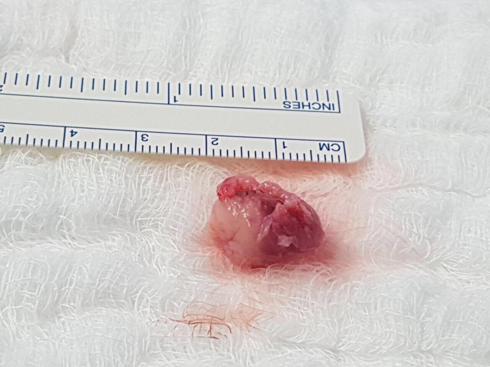 كما كانت المريضة تعاني من تنمل و ضعف في الأطراف منذ فترة طويلة و تزداد سوءاً مع مرور الوقت، و عند دخولها المستشفى و إجراء الفحوصات اللازمة و الأشعة تم اكتشاف الورم و إدخالها على الفور لغرفة العمليات و إجراء الاستئصال للورم، و قد أستمرت العملية قرابة 5 ساعات و تم استئصال الورم الذي بلغ حجمه 2 سم طولاً و 3 سم عرضاً، و ذلك من خلال فريق طبي بقيادة استشاريي جراحة المخ و الأعصاب بالمجمع .