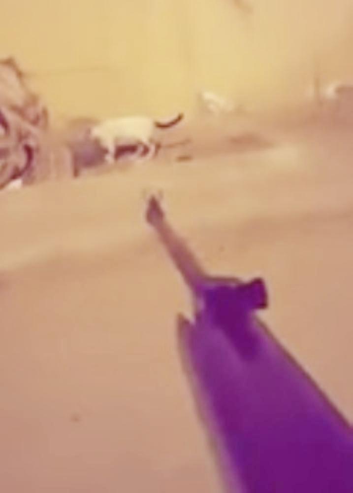 صورة من مقطع متداول عن إطلاق النار على القطط.