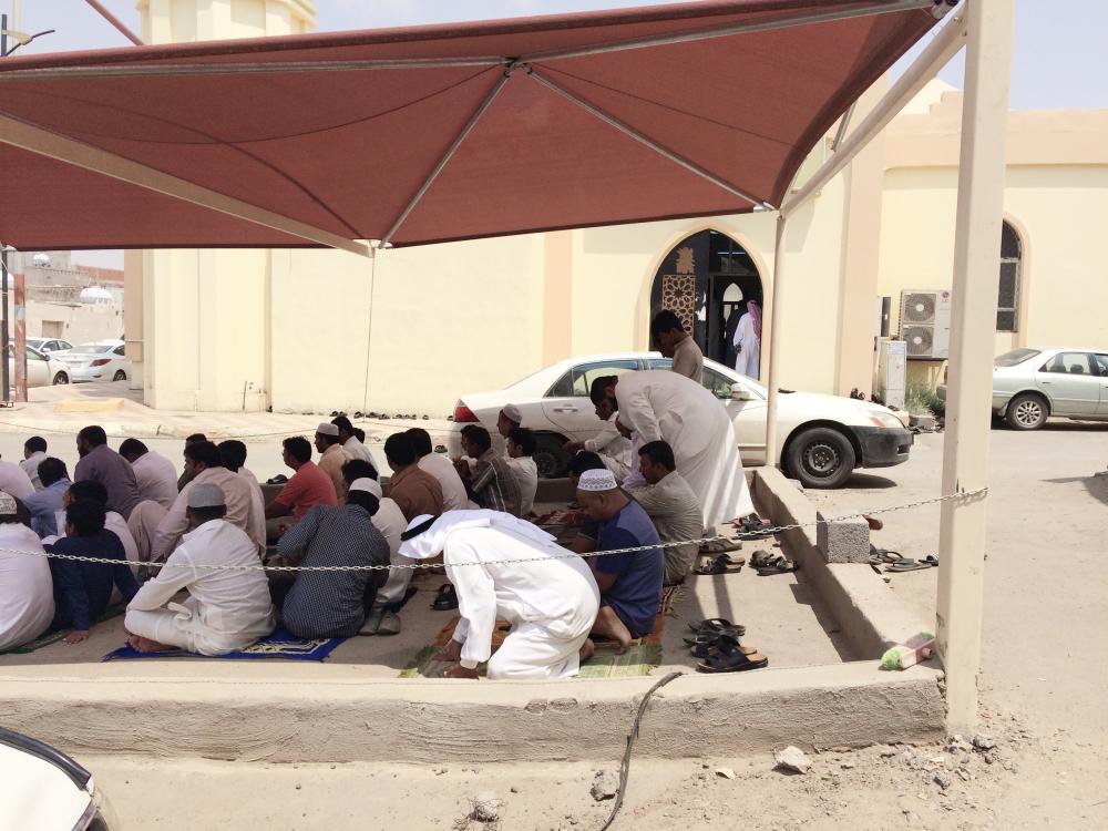 بعض الجوامع عمدت لإقامة مظلات صغيرة لاستيعاب الأعداد الكبيرة من المصلين. (عكاظ)