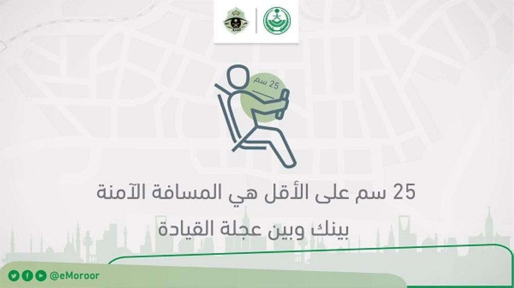 وقالت عبر منشور في تغريدة بحسابها الرسمي في «تويتر»: «تأكد من أن تكون المسافة بينك وبين مقود القيادة لا تقل عن ٢٥ سم على الأقل».