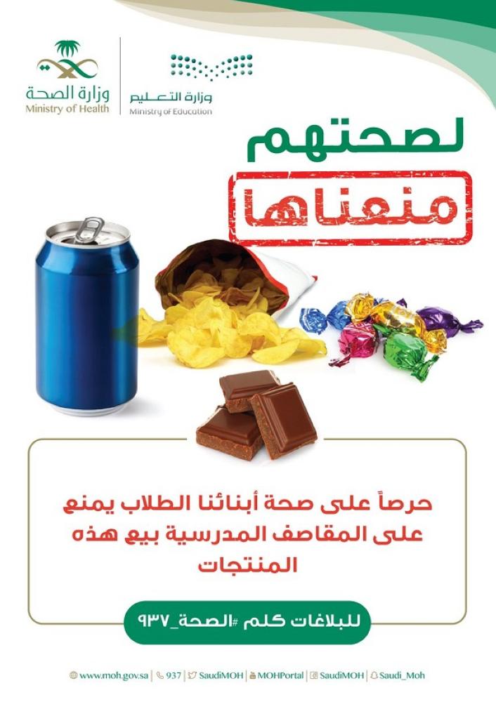 وكانت وزارة الصحة نبهت إلى الأغذية غير الصحية التي حذرت من بيعها للطلاب، إذ إنها تساهم بالضرر في صحتهم، وتم منعها من المقاصف المدرسية بالتعاون مع وزارة التعليم، داعية إلى تقديم البلاغات عبر الرقم 937.